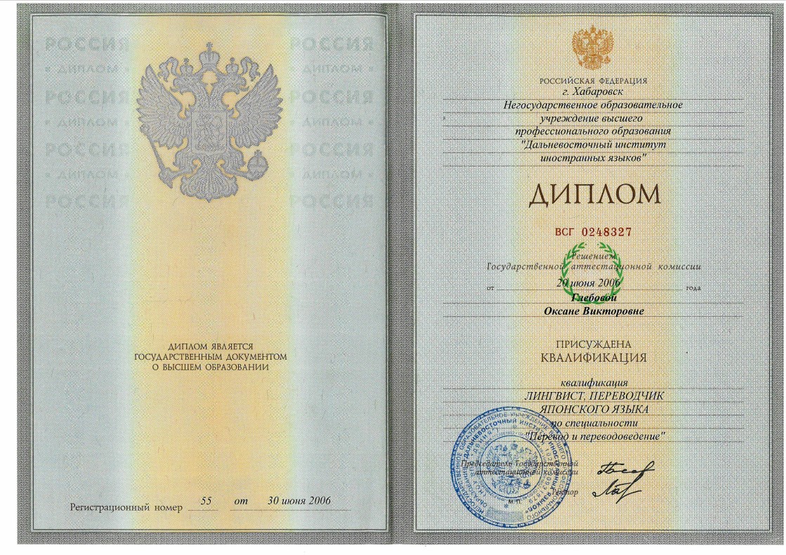 Первое - лингвист, переводчик японского языкаВторое - психолог- психоаналитик ВЕИП (Восточно Европейский Институт психоанализа Санкт-Петербург)