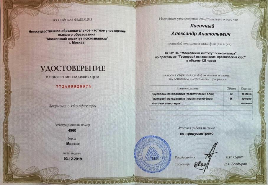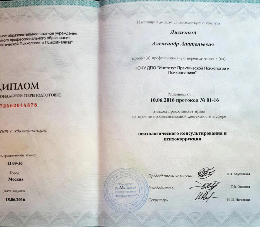 Индивидуальная консультация психолога/психотерапевта (Лисичный А.А.)